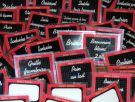 Parure de plastiquettes " Ardoises écolières " avec support couleur bordure bordeaux écriture blanche - copie 19