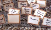 Parure de plastiquettes Imit cadre doré avec support couleur fond blanc écriture marron